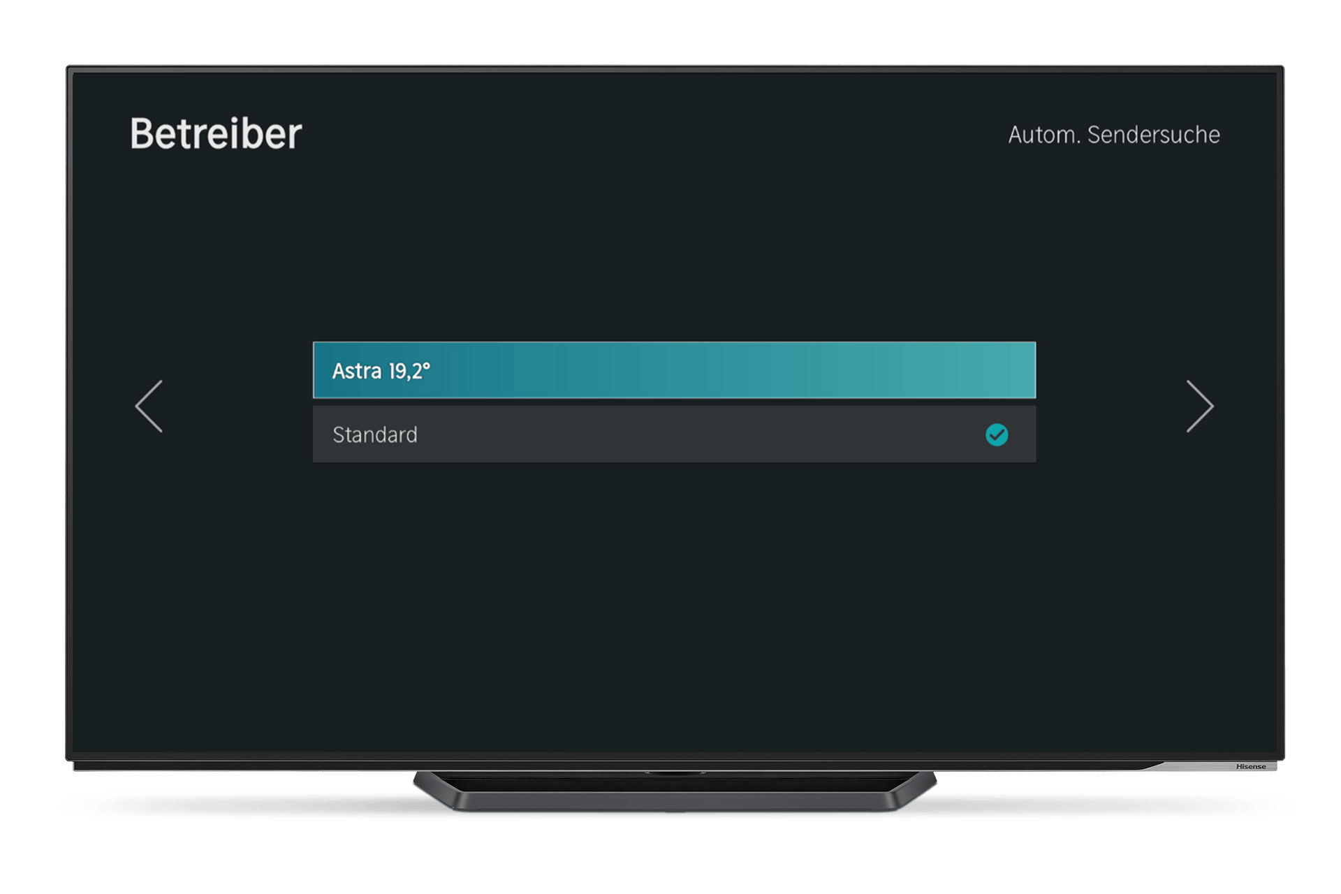 Wähle beim Empfang „Satellit“ und anschließend den Betreiber „Astra 19.2“ aus.