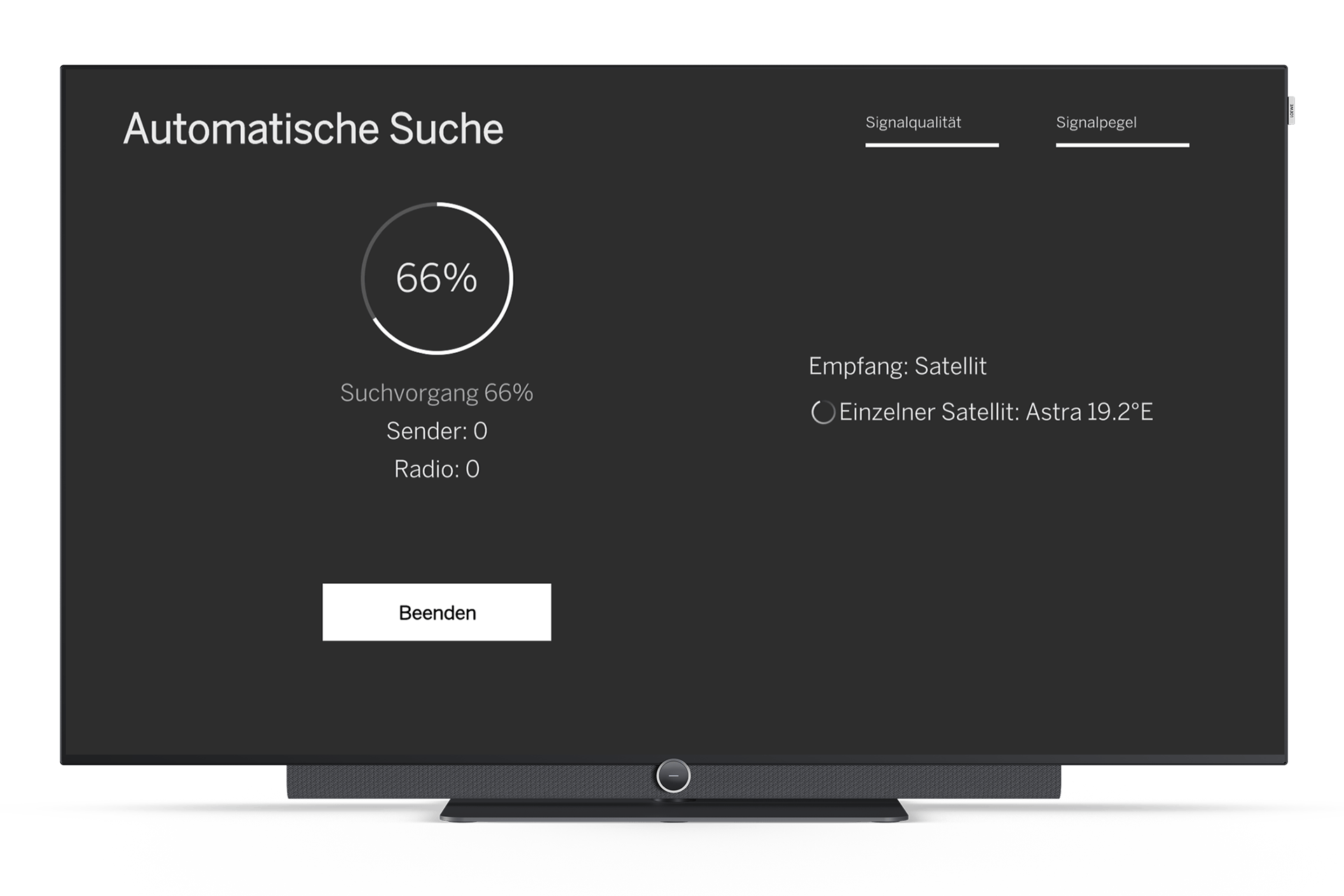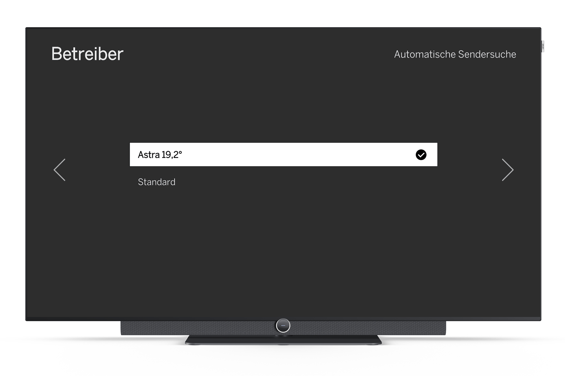Wähle beim Empfang „Satellit“ und anschließend den Betreiber „Astra 19.2“ aus.