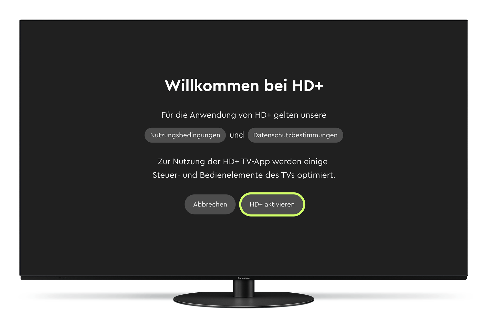 Bei der Erstinstallation deines Panasonic TV-Geräts kann die HD+ TV-App direkt nach dem Sendersuchlauf installiert werden.
