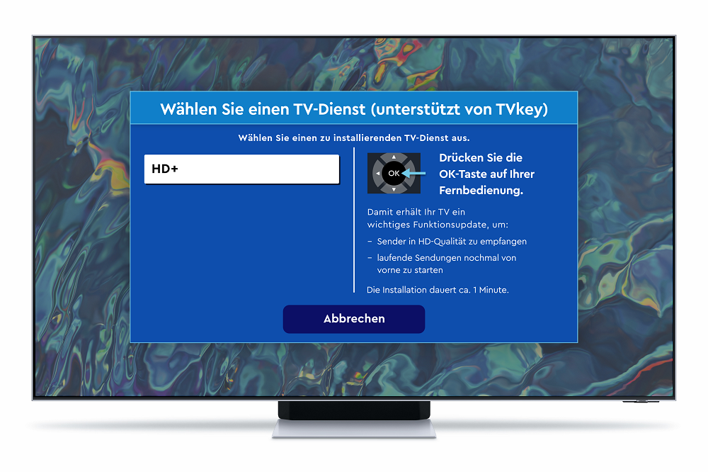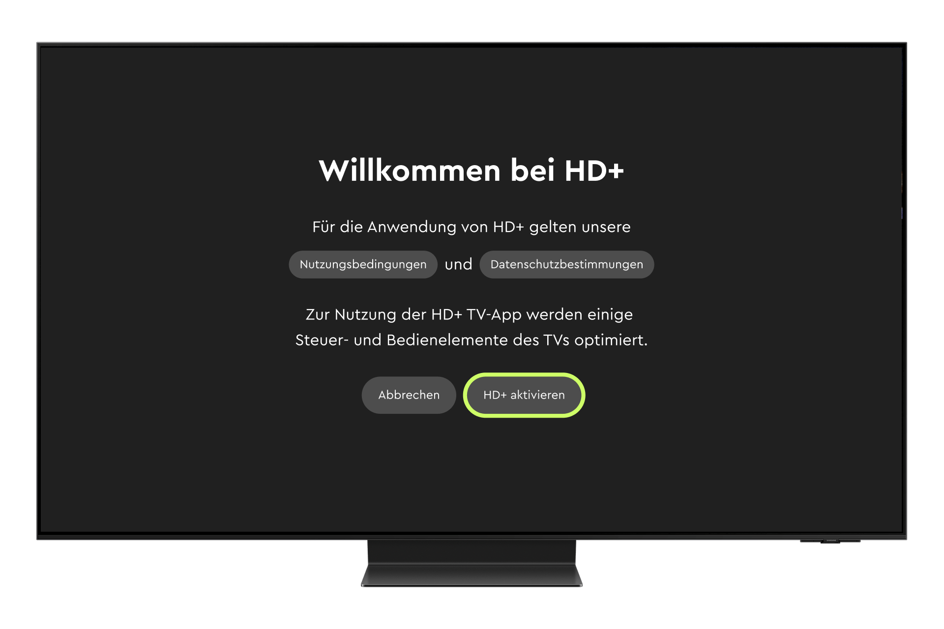 Direkt nach der Erstinstallation deines Samsung TVs erscheint ein Pop-up-Fenster, das dich zur Installation der HD+ TV-App einlädt.
